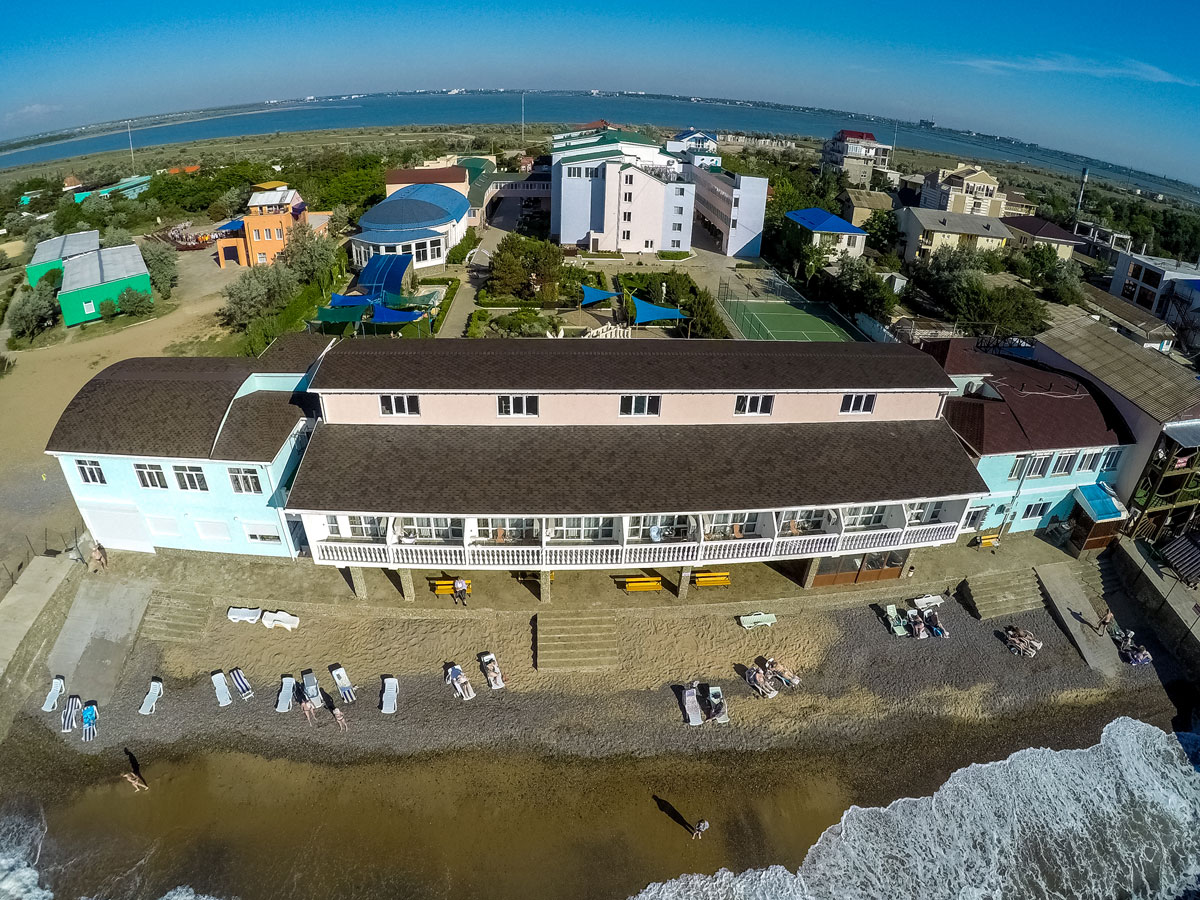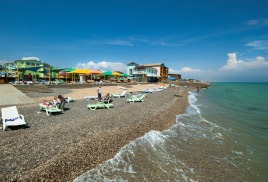 Пляж: собственный, песчано-галечный в 30 м от корпусов, оборудован теневыми навесами, лежаками, душевыми. Работают пункт проката пляжного инвентаря, кафе, медпункт.
