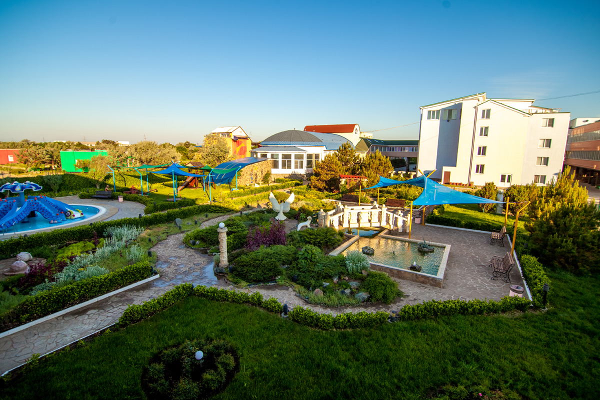- открытый подогреваемый бассейн с минеральной водой, 5х10 м, работает круглогодично, температура воды +28 °C