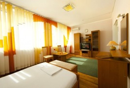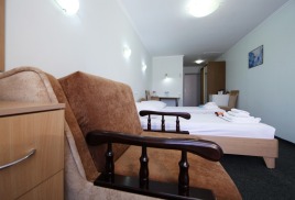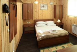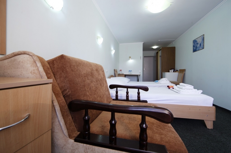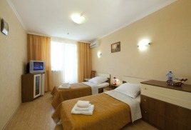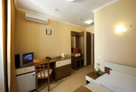 - 2 местный 1-комнатный Улучшенный номер без балкона. Площадь 15 кв.м. В номере: двуспальная кровать шириной 1, 4 м., набор мебели, кондиционер, холодильник, телевизор, телефон, wi-fi, санузел (душ, туалет, умывальник, фен, халат, набор полотенец, тапочки, мини-парфюмерия). Вид во двор санатория. Дополнительное место не предусмотрено.