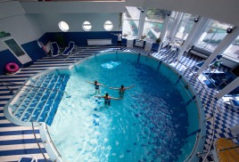 - СПА-салон (подогреваемый крытый бассейн с пресной водой (28 градусов) работает в зимнее время), две зоны гидромассажа, встречная волна, джакузи, финская сауна, турецкий хаммам), салон красоты, турбосолярий.