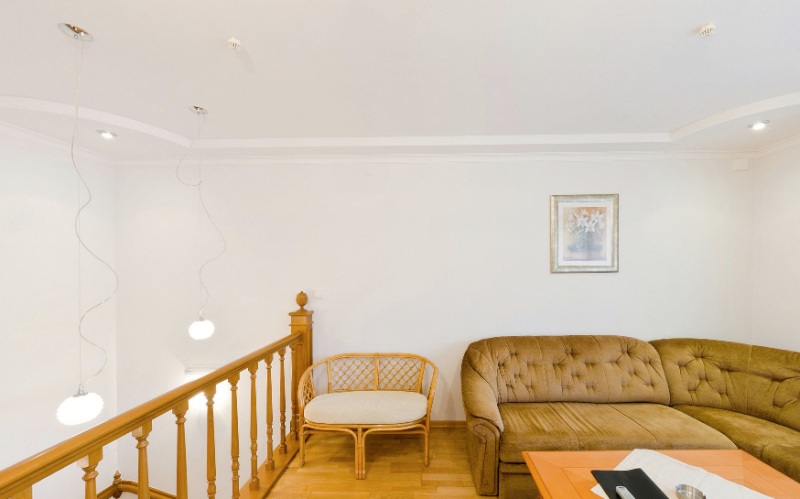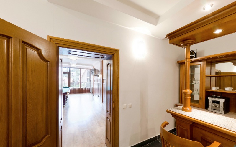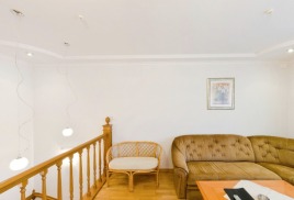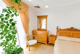 - 2-местный номер 2-этажный. На первом этаже бильярдная, комната отдыха с барной стойкой, выход на террасу. На втором этаже - спальня с двухместной кроватью, гостиная с мягкой мебелью выход на широкий балкон с плетеной бемелью, кухня с электрооборудованием и посудой, сауна, совмещенный санузел с душевой кабиной, беде, стиральная машинка.