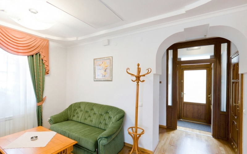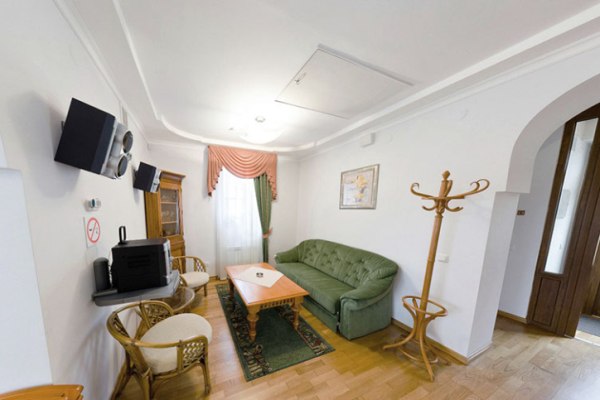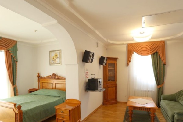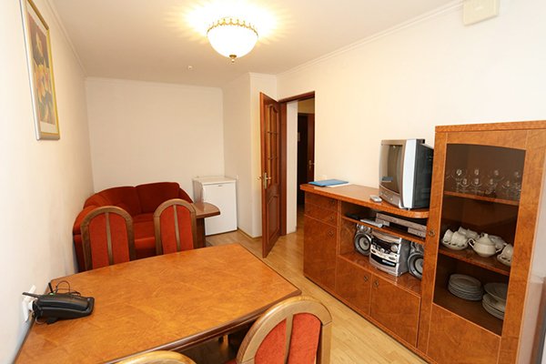 - 2-местный 2-комнатный Повышенной Комфортности. Площадь: 25 кв.м. В номере: спальня с двуспальной кроватью, гостинная с мягкой мебелью, кондиционер, холодильник, электрочайник, санузел с душевой кабиной, видом на двор. Дополнительное место диван.