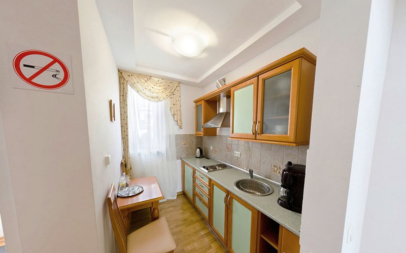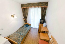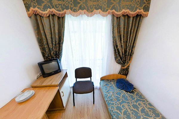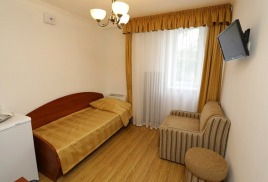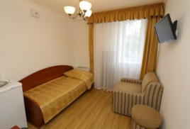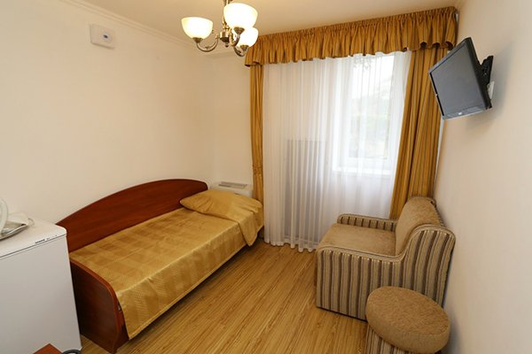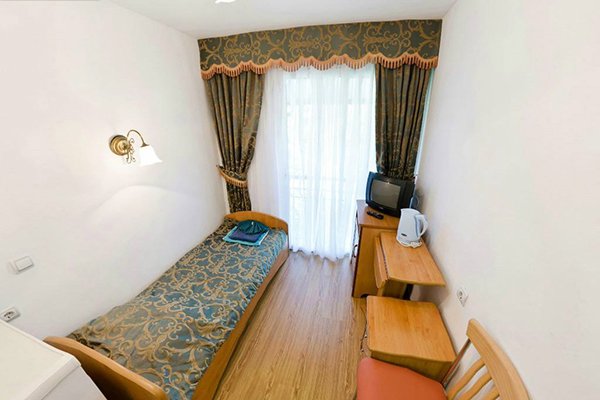 - 1-местный 1-комнатный Стандарт. Площадь: 11 кв.м. В номере: односпальная кровать, холодильник, телевизор, санузел с душевой кабиной, французский балкон с видом на парковую зону и Генуэзскую крепость. Дополнительное место — раскладное кресло.
