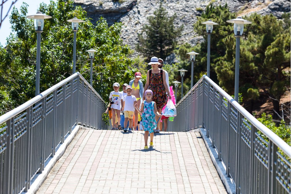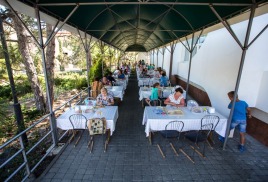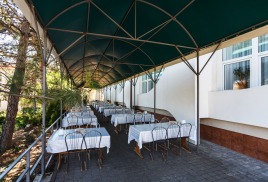 Пляж: галечный, в 300-350 м от пансионата по пешеходной аллее. Пляж оборудован двухъярусным солярием, удобными лежаками из экологически чистого дерева.