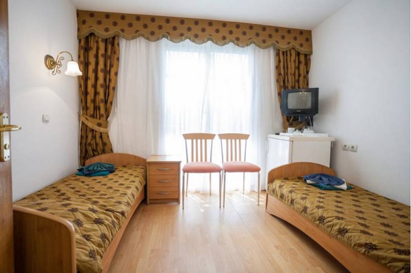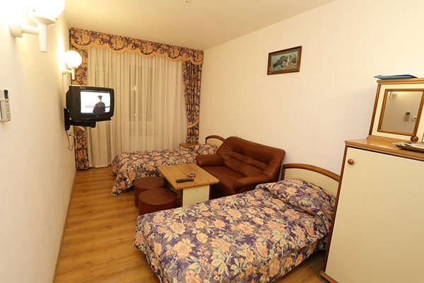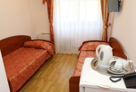 - 2-местный 1-комнатный Стандарт. Площадь: 25 кв.м В номере: две односпальные кровати, холодильник, телевизор, санузел с душевой кабиной. Номер без балкона. Дополнительное место не предусмотрено.