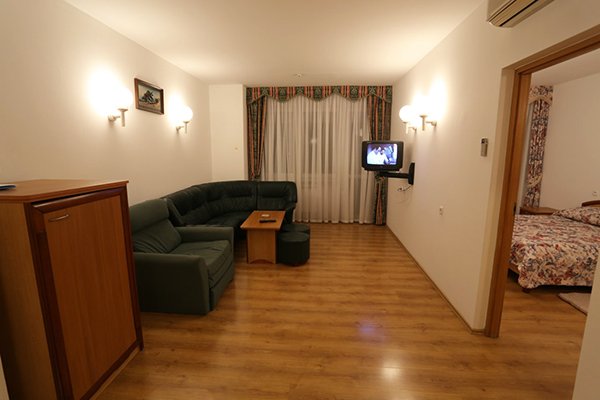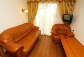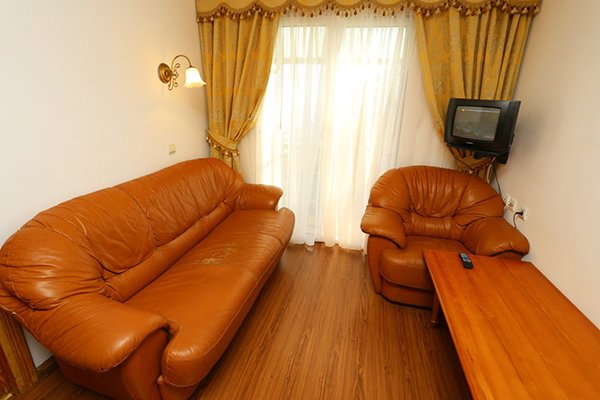 - 2-местный 2-комнатный номер Повышенной Комфортности. Площадь: 25 кв.м. В номере: спальня с двуспальной кроватью, гостинная с мягкой мебелью, холодильник, телевизор, санузлом с душевой кабиной, балкон с видом на парковую зону и Генуэзскую крепость.