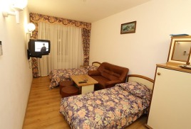 - 2-местный 1-комнатный Повышенной Комфортности. Площадь: 25 кв.м. В номере: две раздельные односпальные кровати, мини диван, телевизор, набо посуды, холодильник, кондиционер, санузел с душевой кабиной, балкон с видом на парковую зону и Генуэзскую крепость на восток. Дополнительное место не предусмотрено.